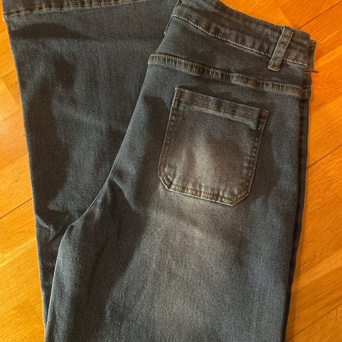 Helt ny bukse, tøffe jeggings/jeans, str L. Mye stretch. Rette bein. «Dra-på-bukse»! Selges til lav pris da den er vanskelig å returnere.
