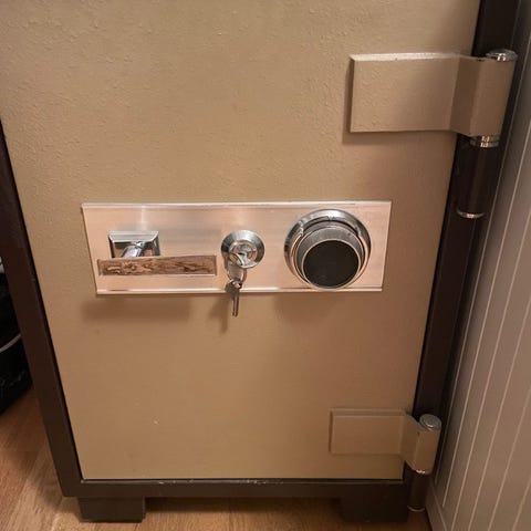 Selger en solid og pålitelig safe med elektronisk kodelås.