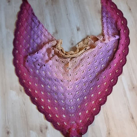 STORT HÅNDHEKLET TREKANTSJAL I FIN BRUN FARGE