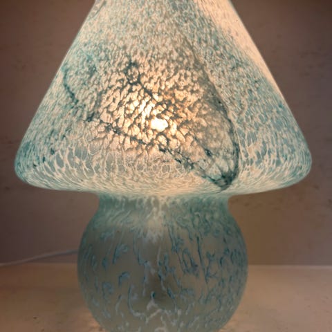 Murano mushroom bordlampe i fargen yellow swirl. Kjøpt hos Mille fiori interiør. Selges pga flytting og den ble ikke brukt som tenkt.