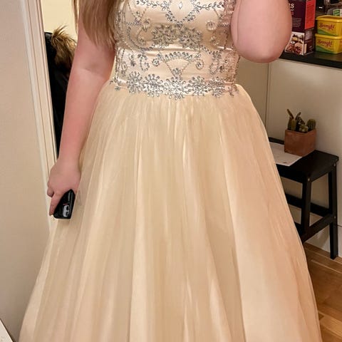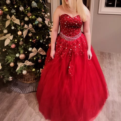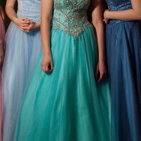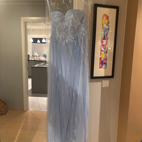 Nydelig mintgrønn ballkjole. Brukt en kveld. Størrelse er 32, men har knyting i ryggen, så kan justeres litt. Kjolen er brukt av noen på 156 med veldig høye sko.