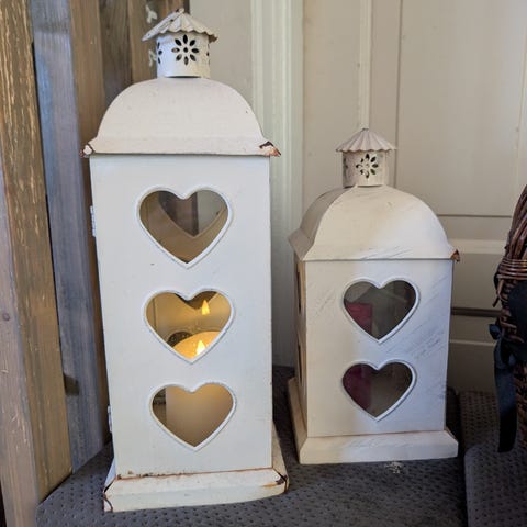 2stk pent brukte lykter med skinn detaljer str ca 35 cm selges samlet for 250kr