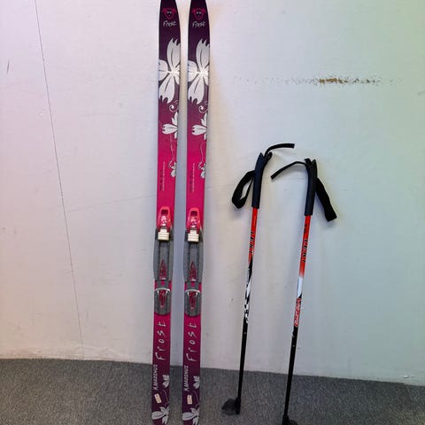 Blandet Merker langrennsski i ulike lengder fra 110 cm til 210 cm. Skiene har varierte farger og design, med nnn binding og materialer. Egnet for langrenn og skiaktiviteter for både voksne og barn. Selges pr par. Forskjellige priser. Billigere for dei minste. Også skøyter