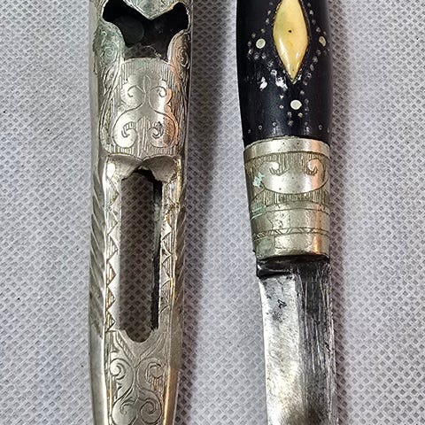 Samlerobjekt. Ingen stempler. Messingbeslag. Total lengde: 22 cm. Lengde bladet: 8 cm. Kan sendes