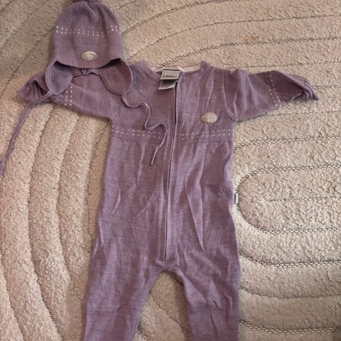 Selger et superfint sett i str 68 fra Lil Atelier. Syntes det var så søtt på at det ble brukt også mens hun var i str 74. Er et lite hull bak oppe ved bukselinningen - se bilde. Er ved en gren, så legger ikke så merke til det, og vil nok ikke se det så godt hvis det fikses.