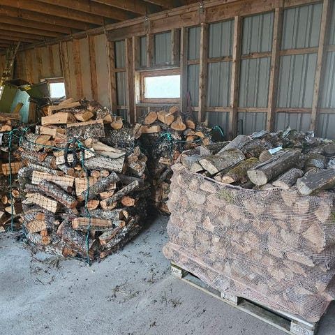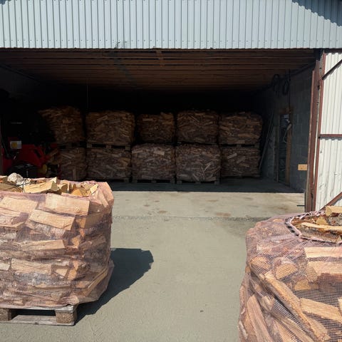 Tørr bjørkeved i 60 liter sekker tilsalgs.