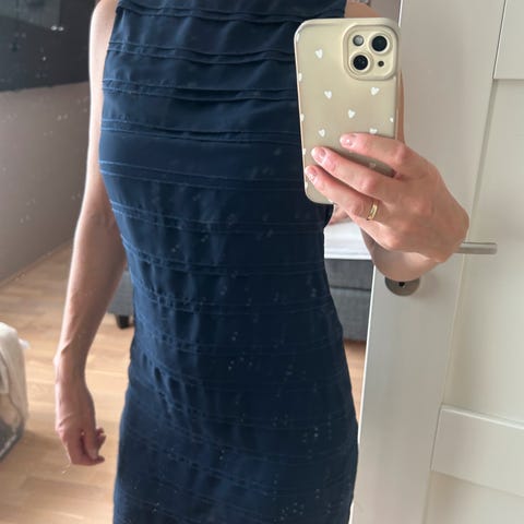 Elegant Samsøe & Samsøe kjole i mørk marineblå, størrelse XS.