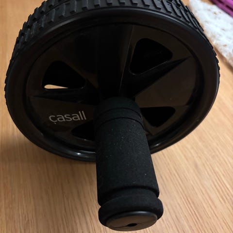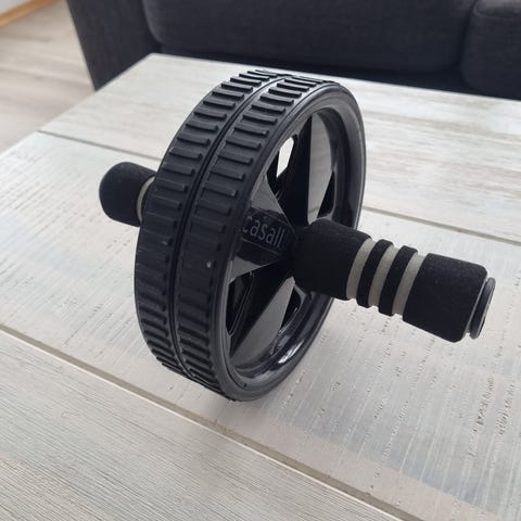 Casall treningshjul for mage og kjernemuskulatur med doble hjul og grepvennlige håndtak i svart farge. Egnet for styrketrening og stabilitetsøvelser.