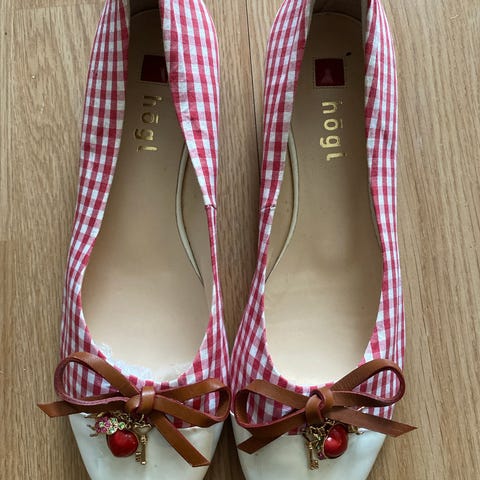 Orange ballerinasko i hanskemykt skinn med strikk i typen «Butterlight» fra Høgl i str 4,5. Tåpartiet er i lakk og dette er en superlett modell som sitter godt på foten. Skoene er lite brukt og selges for kr 175,- Høgl er et Østerrisk merke som lager kvalitetssko.