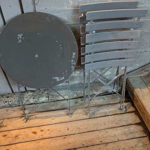 Plastmøblene følger med og alt gis bort samlet. Hentes på Smestad.