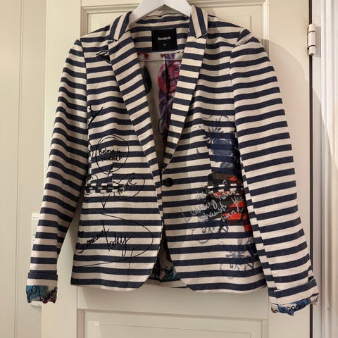 Svart jakke Desigual med avtakbar armer og krage, str 38