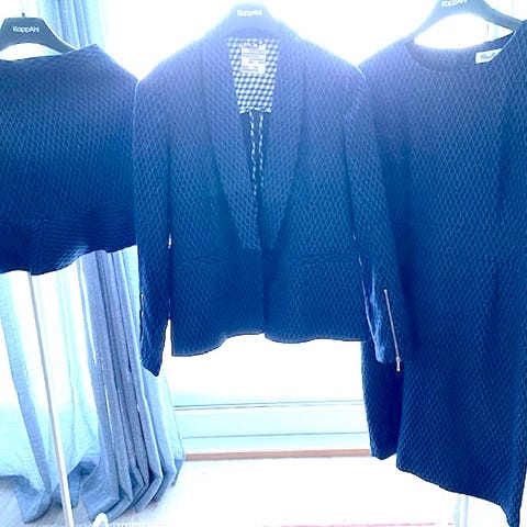 Lang regnkåpe med fór og avtagbar hette. Lukkes med glidelås, borrelås til stramming på ermene. Luftehull under ermene. To lommar med klaff foran på regnkåpa, samt en innerlomme. Sydvest i same mønster følger med. Overvidde 128, rygglengde 118
