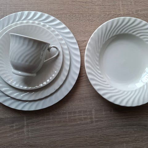 Serviset er elfenbenshvitt med