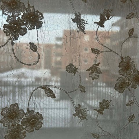 Seks lengder gardiner. Fint gjennomsiktig stoff. Selges samlet