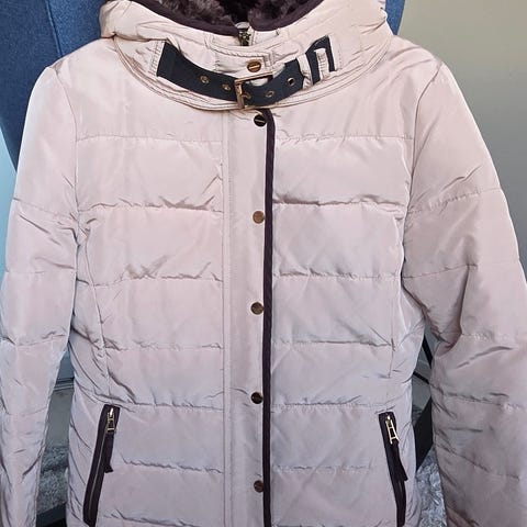 Pent brukt lett dunjakke fra add med lammepelskrage