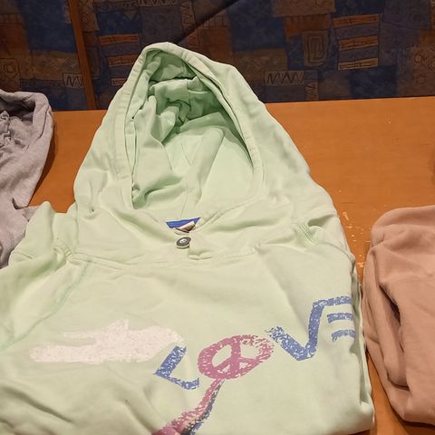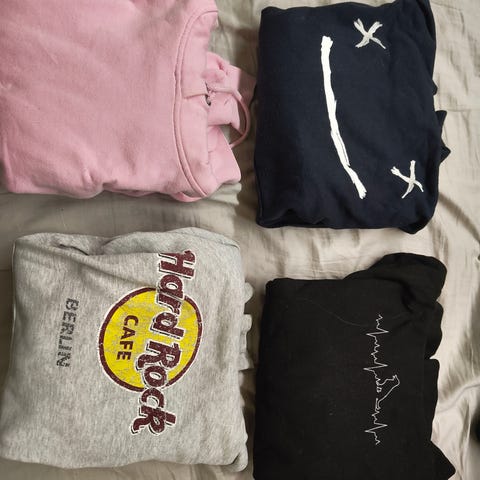 En hettegenser er fra O'Neill, gammel WOW, Primark, Nike og Cubus.