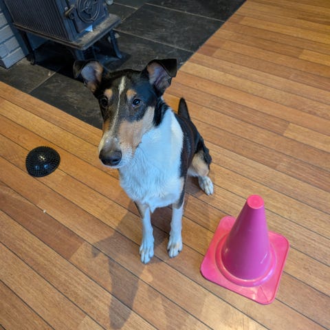 Er godt sosialisert med små og store hunder, barn fra 4 år og katt.