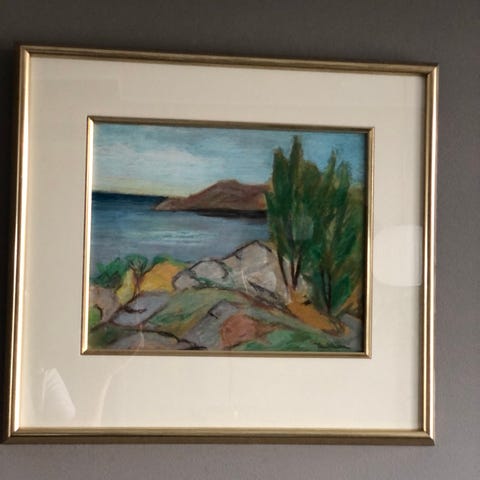 Original håndmalt akvarell på papir, signert av kunstner (datert 1990).