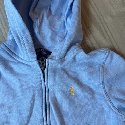 Ralph Lauren hettegenser i blå farge. Størrelsen tilsvarer ca 116/ 122.