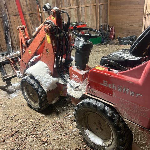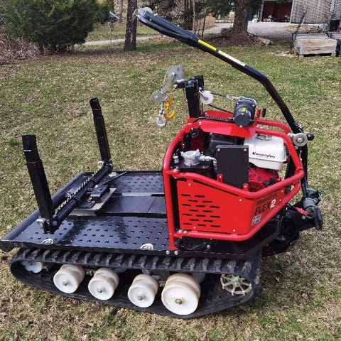 Jernhest i god stand med elgbalj, motorvinsj og manuell vinsj klar for skogen. Jernhesten er i god stand og er gjevnlig vasket og vedlikeholdt. Den har nylig fått ny forgasser, bensinslange, nytt luftfilter, ny drivreim, smurt variator, ny girolje og motorolje. Beltene er i god stand og de er pigget for bedre fremkommelighet. Dette er av den nye typen jernhest så den kan leies etter seg samt stå oppå og kjøre. Styringen er veldig lett og god så den er behagelig å bruke i skogen. Generellt lite slitasje og den er lite brukt med tiden.