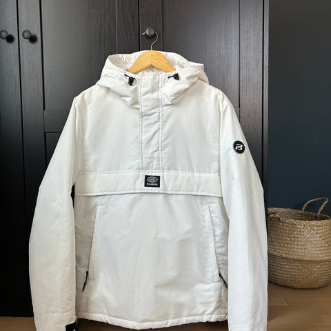 Pull&Bear Svart Jakke for herre i størrelse S. Jakken har hette med snorjustering og glidelås foran. Laget i lett materiale, egnet for utendørs bruk.