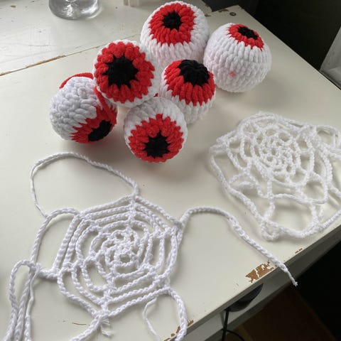 Halloween-pynt med telyshodere, lyslenke, hodeskalle, skjelett, lysende djevelhorn m.m selges grunnet flytting.