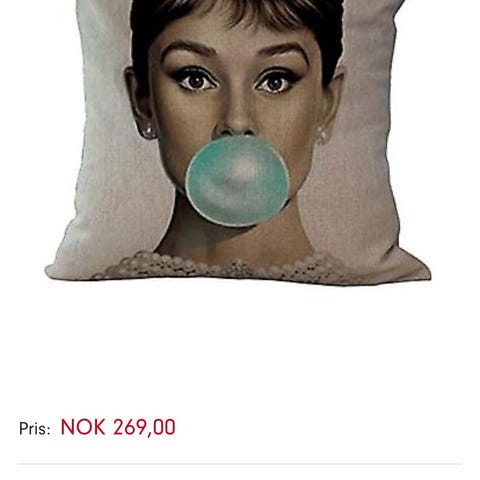 2 putetrekk har hodeskaller på.D et er også trekk med Audrey hepburn og grace kelly på.