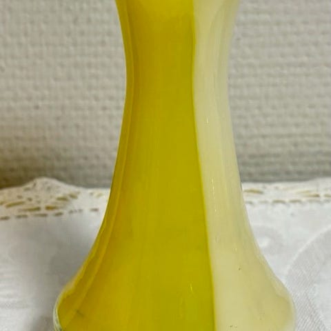 Søkeord: retro vintage opalinglass opalglass opalin hvit grønt bølget kant blomstervase retrovase tivolivase glass glassvase.