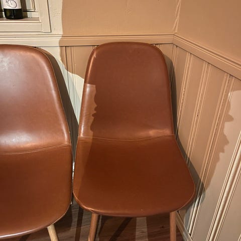 Bord og stoler har vært lagret lenge men er helt med noen bruksmarker,