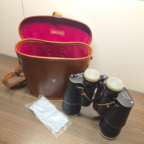 Kikkert med svart kropp og rødt innvendig etui. Leveres med bæreveske i svart materiale med knappestengning og skulderrem. Passer til generell bruk for observasjon og friluftsliv.