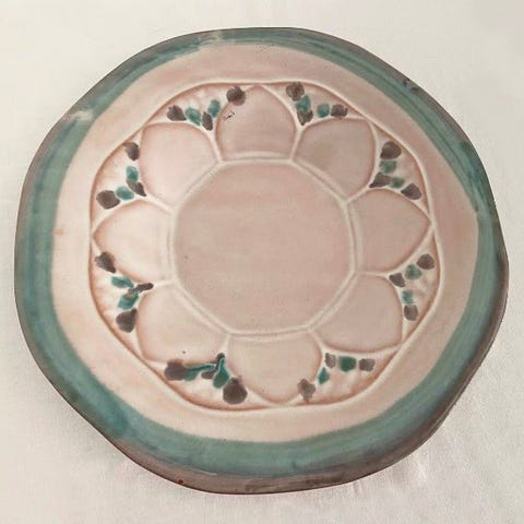 Nydelig gammel Terin fra Åros keramikk, (1936-1950.). Lite nag på innsiden av lokket, se bilde. 350 kr