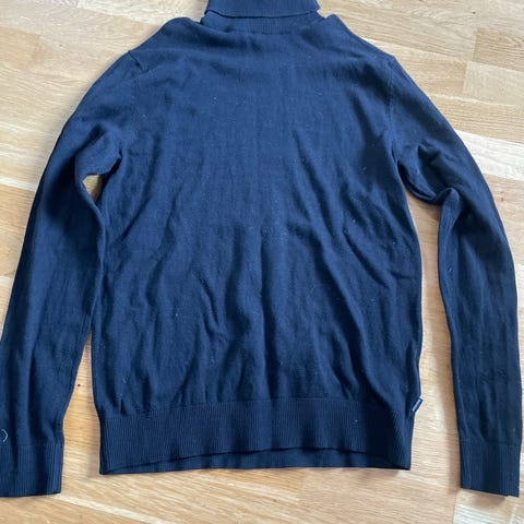 H&M Blå herregenser i størrelse S. Genseren har høy hals og er laget i et mykt materiale. Passer til hverdagsbruk og kan kombineres med ulike antrekk.