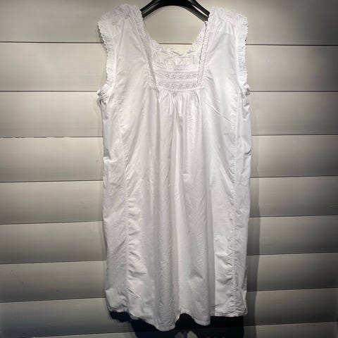 RETRO- flott GUL nattkjole, størrelse 42 i 100% nylon. Lengden er 128 cm, Bredde under ermene er 50 cm, veier 135 gr.am. Den er fra 1960-tallet. Merkelapp inni. «MYTONI str. 42, 100% nylon. Made in England». En annen merkelapp «COURTAULDS CELON 100% nylon». Fargen på noen av bildene er feil. Fargen er GUL med litt innslag av sitron. En flott skarp gulfarge. Blondene er hvite. Har to små flekker som ikke er mye synlige (se bilder av det). Har tatt hensyn til det i prisen. Ellers er nattkjolen meget fin, har ingen skade, eller slitasje. Se ellers alle bildene av nattkjolen. Nattkjolen kan sendes, eller hentes her i Sandefjord, eller avtale henting i Tønsberg på Tolvsrød.