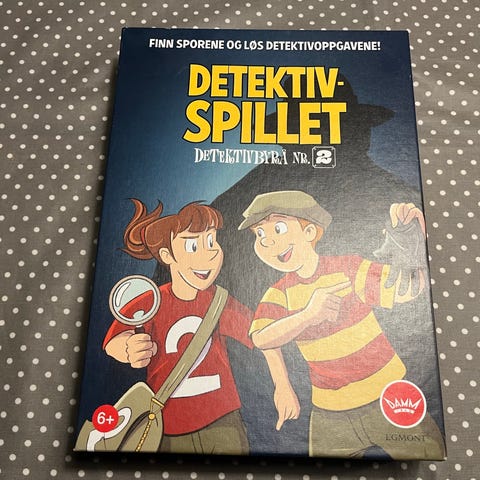 Detektivspillet brettspill for familie og barn, inneholder brett, spinner, kort og spillbrikker. Spillet er designet for 2-6 spillere og har et detektivtema med oppgaver og mysterier. Materialet består av papp og plast, og spillet leveres i original eske.