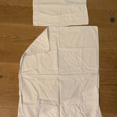 Selger sammen to nye sengesett, en i bomull og en i flanell (den ble vasket før evt. bruk, men ble aldring brukt).