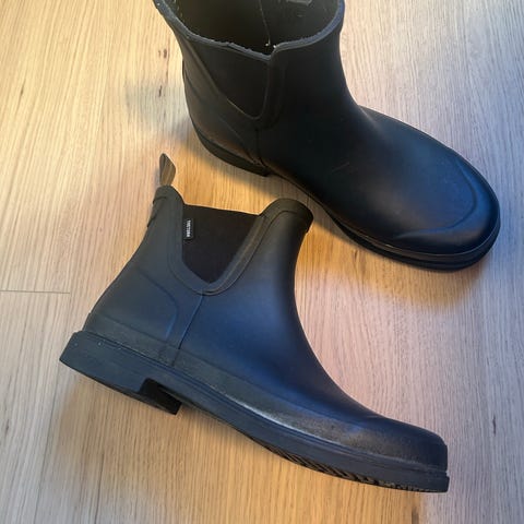 Tretorn regnstøvler i størrelse 36, svart farge. Laget av vanntett materiale egnet for våte forhold. Støvlene har en robust såle for godt grep og snøring for justerbar passform.