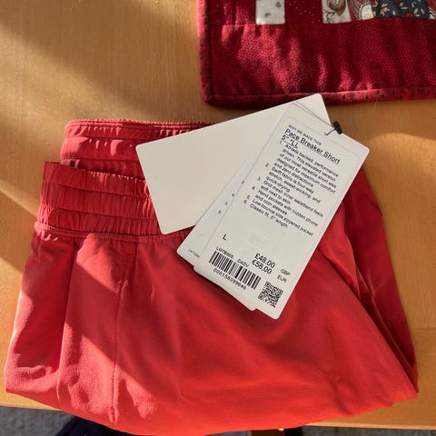 Lite brukt rødoransje Lululemon half zip i str L herre.
