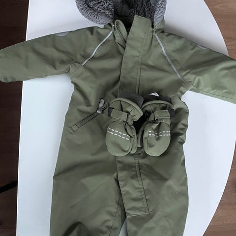 Fint brukt vinterdress med tilhørende tøffler og votter