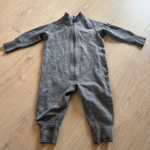 Supergod og varm dress i ullfrotté merino fra Polarn o. Pyret. Størrelse 86, grå farge.