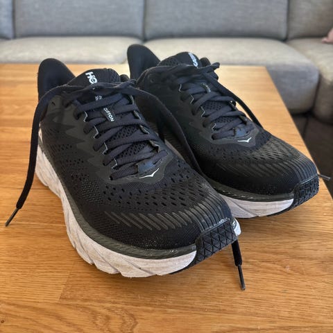 Hoka løpesko i størrelse 40 med svart farge. Skoene er designet for løping og har en slitesterk såle med god demping. Materialet består av pustende tekstil for komfort under trening.