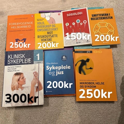 Selger fagbok fra sykepleien. Mulig det er markeringer i den. Smittevern og hygiene.
