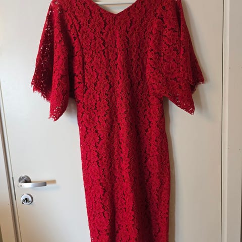Vila Festkjole i burgunder velour, størrelse 38 for dame. Kjolen har lange ermer med puffdetaljer, rund hals og knappelukking bak. Materialet er mykt og gir et elegant uttrykk. Passer til formelle anledninger og festbruk.