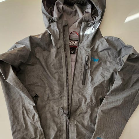 Lett og vanntett jakke fra Outdoor Research. GORE-TEX Active 3L-membran. Tar lite plass når den ikke er i bruk. Lite brukt