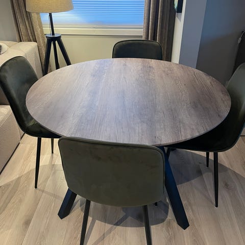 Skeidar plain bord og nordic parade stoler i brun velur farge
