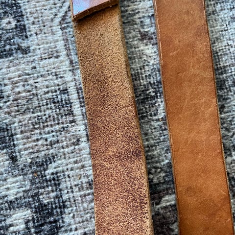 Orchiani herre skinnbelte i brun farge. Beltet har en metallspenne og flere hull for justering av størrelse. Materialet er skinn, og beltet viser tegn på bruk med noen slitasjemerker.