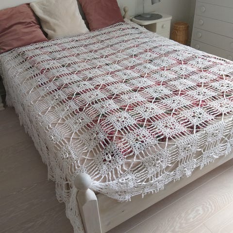 Nydelig heklet sengeteppe selges.