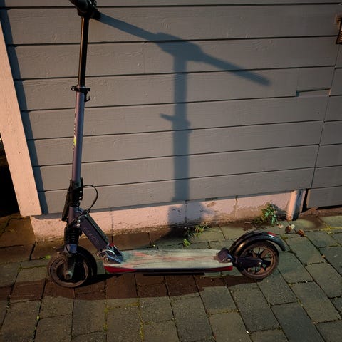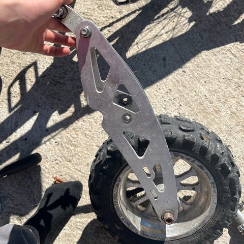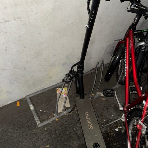 Bakhjulet har litt lite luft, men ikke punktert – må bare pumpes.