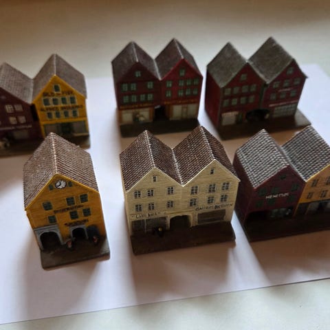 Bergen brygge - Miniatyrhus Håndmalt