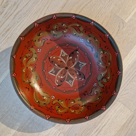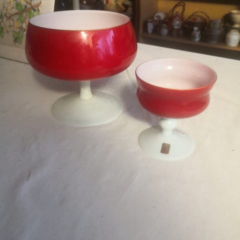 Tre utrolig pene tsjekkisk rubinrøde "bohemian cranberry" boller med omfattende gulldekor. Store bollen måler bredde 22cm høyde 11cm. De to mindre måler, bredde 12cm høyde 7,5cm. Gulldekor er det så nær null slitasje man kan komme. Selges samlet godt pakket.