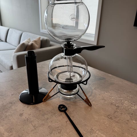 Glass Tekanne Sett Med Dekorativ Stativ og Glasskopper